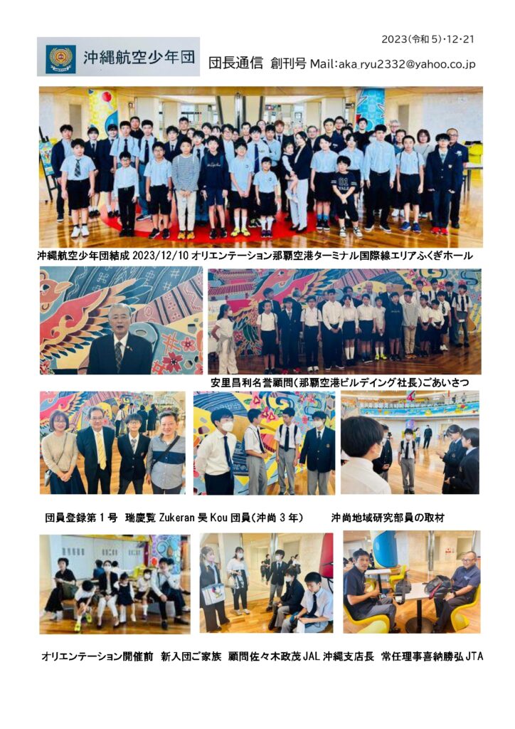 沖縄航空少年団 団長通信 創刊号 2023 (令和5年) 12月